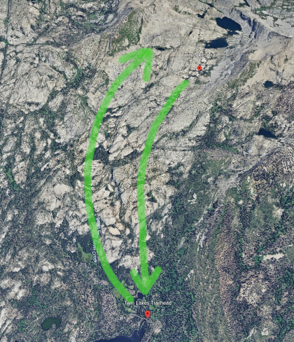 Our hike went off the trail on the way to the small lake, then we climbed to the big lake, and came back on the trail.