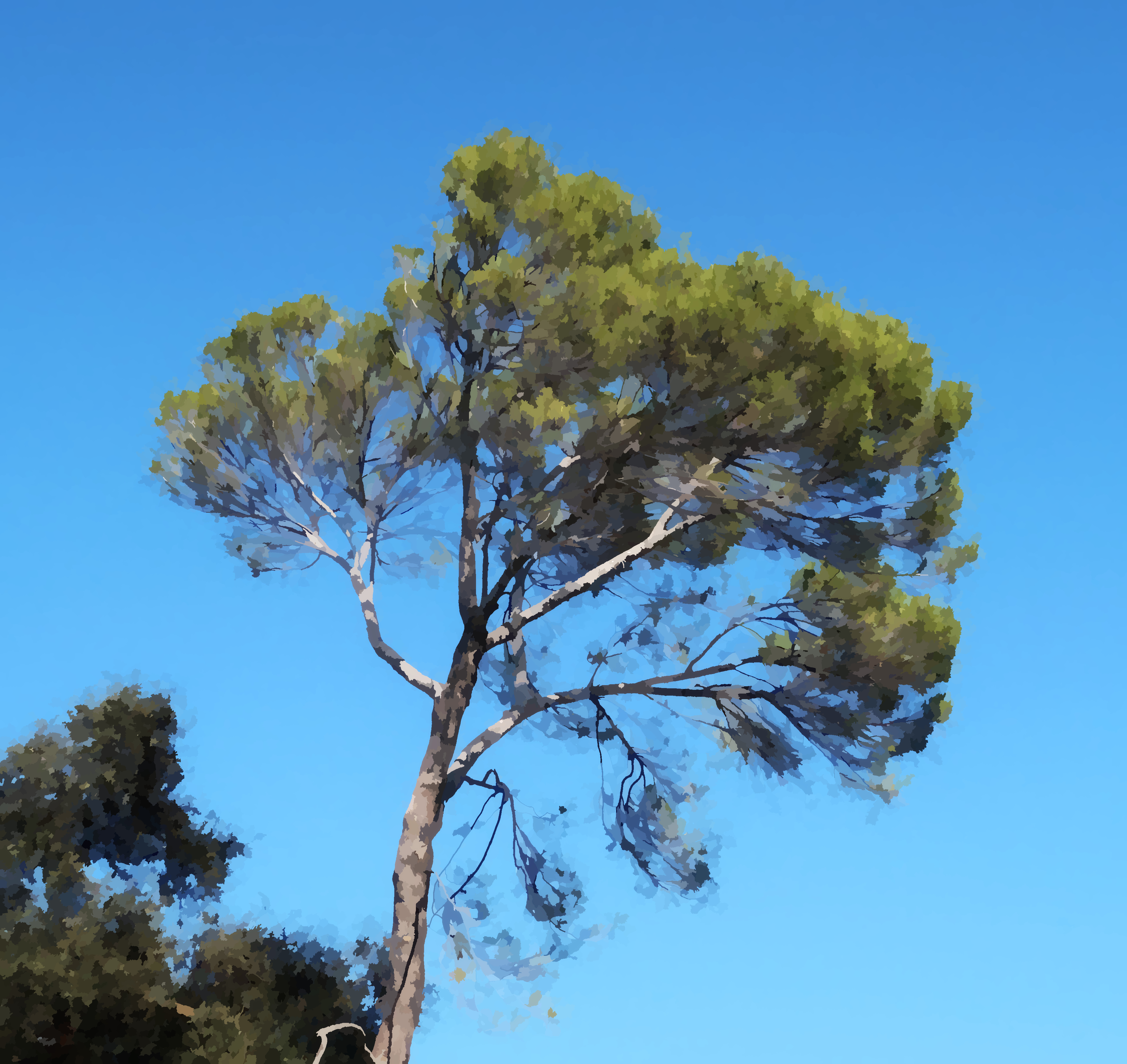 A tree in Land Park, processed. 2025-10-18